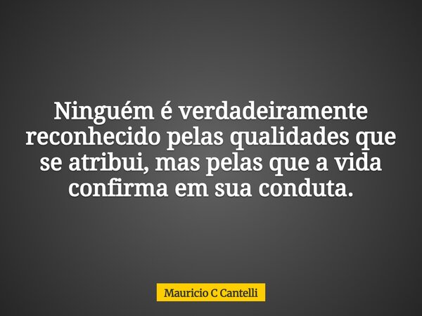 Ninguém é verdadeiramente reconhecido pelas qualidades que se atribui, mas pelas que a vida confirma em sua conduta.
