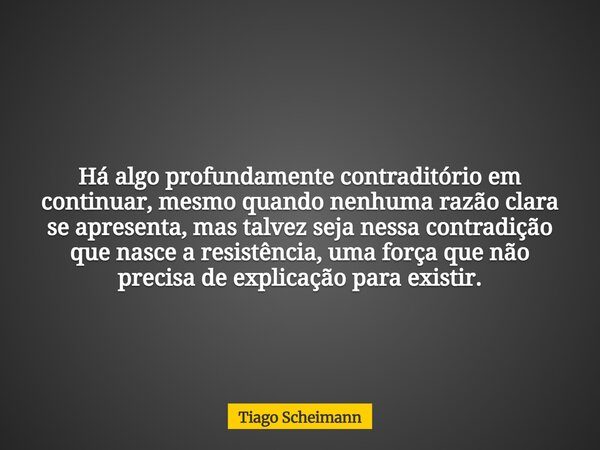 Há algo profundamente contraditório em continuar, mesmo quando nenhuma razão clara se apresenta, mas talvez seja nessa contradição que nasce a resistência, uma força que não precisa de explicação para existir.