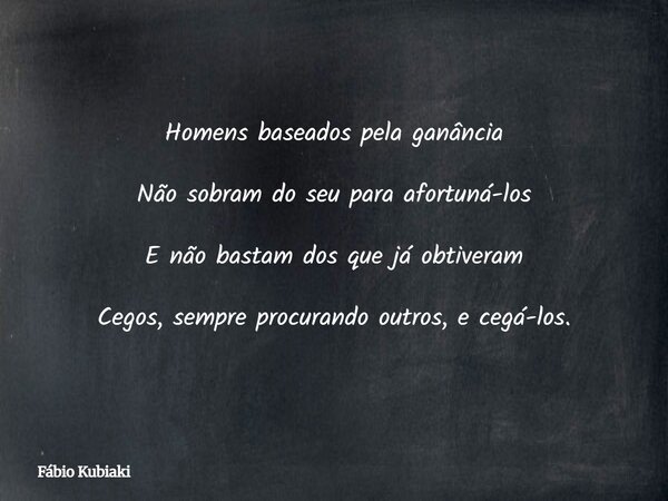 Homens baseados pela ganância Não sobram do seu para afortuná-los E não bastam dos que já obtiveram Cegos, sempre procurando outros, e cegá-los.