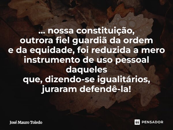 ... nossa constituição, outrora fiel guardiã da ordem e da equidade, foi reduzida a mero instrumento de uso pessoal daqueles que, dizendo-se igualitários, juraram defendê-la!