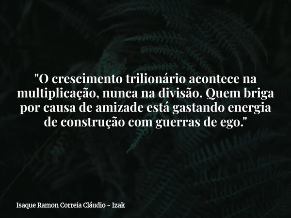 "O crescimento trilionário acontece na multiplicação, nunca na divisão. Quem briga por causa de amizade está gastando energia de construção com guerras de ego."