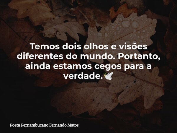 Temos dois olhos e visões diferentes do mundo. Portanto, ainda estamos cegos para a verdade.🕊