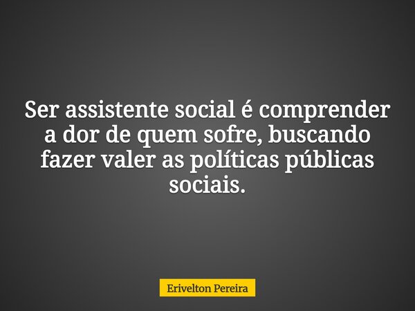 Ser assistente social é comprender a dor de quem sofre, buscando fazer valer as políticas públicas sociais.