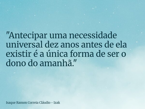 "Antecipar uma necessidade universal dez anos antes de ela existir é a única forma de ser o dono do amanhã."