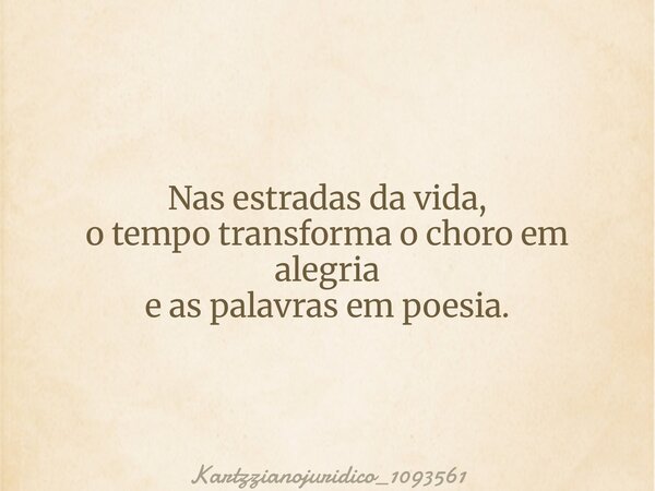 Nas estradas da vida, o tempo transforma o choro em alegria e as palavras em poesia.