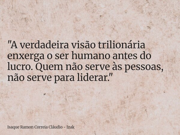 "A verdadeira visão trilionária enxerga o ser humano antes do lucro. Quem não serve às pessoas, não serve para liderar."