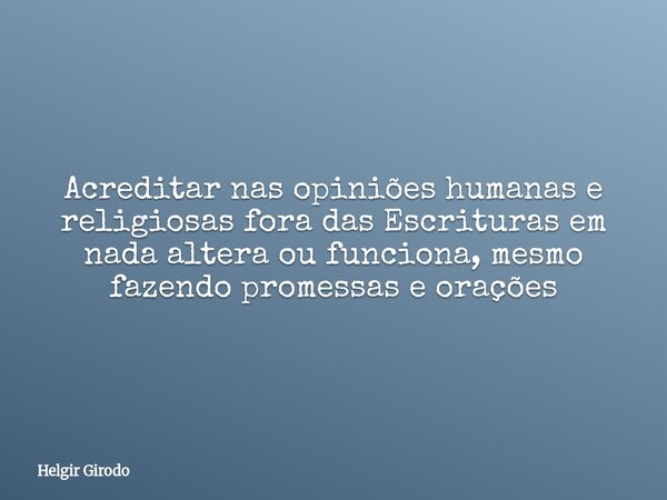 Acreditar nas opiniões humanas e religiosas fora das Escrituras em nada altera ou funciona, mesmo fazendo promessas e orações
