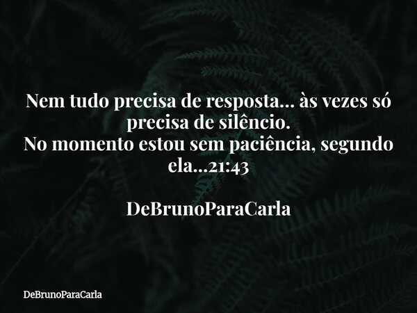Nem tudo precisa de resposta… às vezes só precisa de silêncio. No momento estou sem paciência, segundo ela...21:43 DeBrunoParaCarla