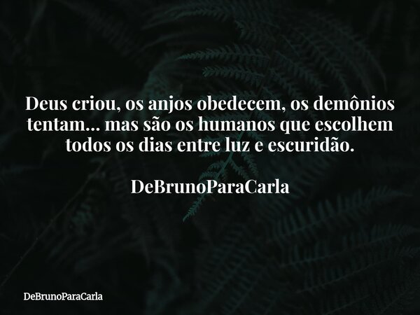Deus criou, os anjos obedecem, os demônios tentam… mas são os humanos que escolhem todos os dias entre luz e escuridão. DeBrunoParaCarla