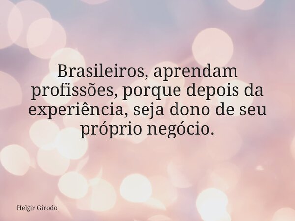 Brasileiros, aprendam profissões, porque depois da experiência, seja dono de seu próprio negócio.
