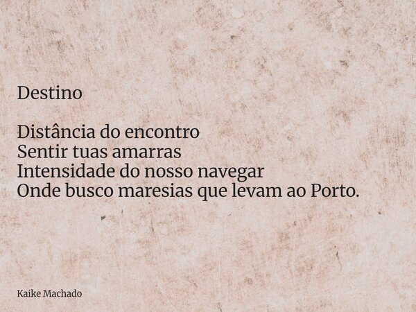 Destino Distância do encontro Sentir tuas amarras Intensidade do nosso navegar Onde busco maresias que levam ao Porto.