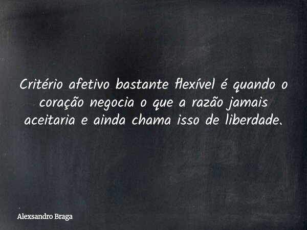 Critério afetivo bastante flexível é quando o coração negocia o que a razão jamais aceitaria e ainda chama isso de liberdade.