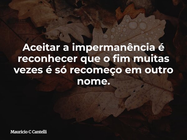 Aceitar a impermanência é reconhecer que o fim muitas vezes é só recomeço em outro nome.