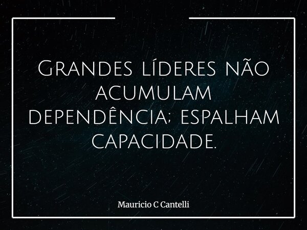 Grandes líderes não acumulam dependência; espalham capacidade.