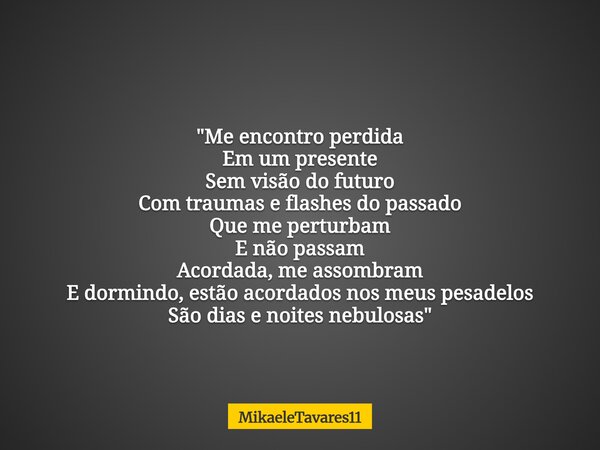 "Me encontro perdida Em um presente... MikaeleTavares11