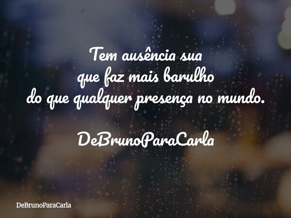 Tem ausência sua que faz mais barulho do que qualquer presença no mundo. DeBrunoParaCarla
