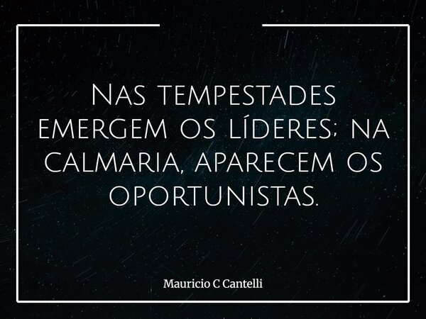 Nas tempestades emergem os líderes; na calmaria, aparecem os oportunistas.