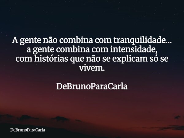 A gente não combina com tranquilidade… a gente combina com intensidade, com histórias que não se explicamsó se vivem. DeBrunoParaCarla