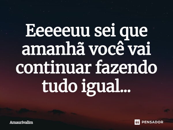 Eeeeeuu sei que amanhã você vai continuar fazendo tudo igual...