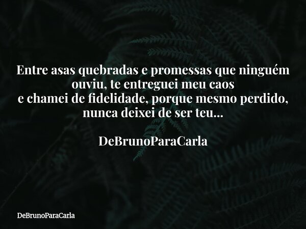 Entre asas quebradas e promessas que ninguém ouviu, te entreguei meu caos e chamei de fidelidade, porque mesmo perdido, nunca deixei de ser teu... DeBrunoParaCarla