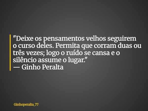 "Deixe os pensamentos velhos seguirem o curso deles. Permita que corram duas ou três vezes; logo o ruído se cansa e o silêncio assume o lugar." — Ginho Peralta