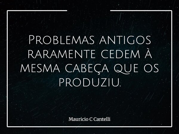 Problemas antigos raramente cedem à mesma cabeça que os produziu.