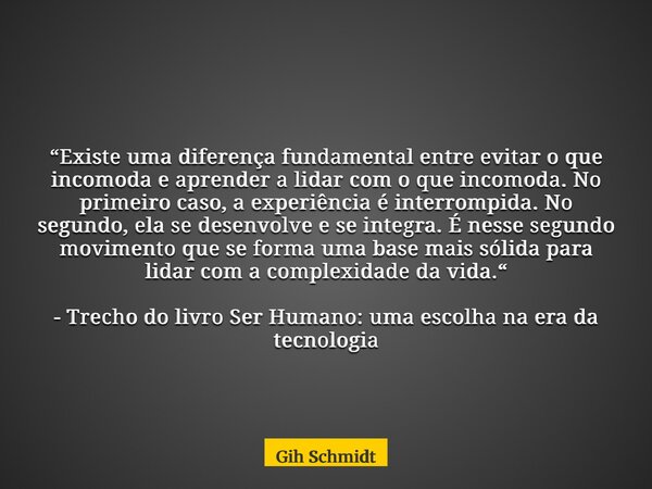 “Existe uma diferença fundamental entre evitar o que incomoda e aprender a lidar com o que incomoda. No primeiro caso, a experiência é interrompida. No segundo, ela se desenvolve e se integra. É nesse segundo movimento que se forma uma base mais sólida para lidar com a complexidade da vida.“