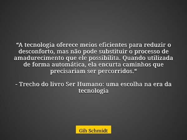 “A tecnologia oferece meios eficientes para reduzir o desconforto, mas não pode substituir o processo de amadurecimento que ele possibilita. Quando utilizada de forma automática, ela encurta caminhos que precisariam ser percorridos.“
