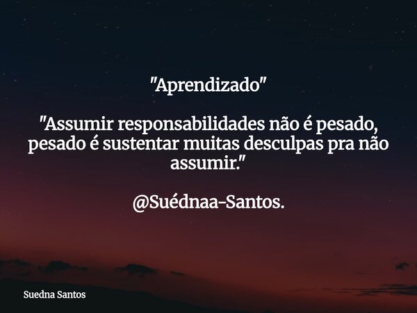 "Aprendizado" "Assumir responsabilidades não é pesado, pesado é sustentar muitas desculpas pra não assumir." @Suédnaa-Santos.