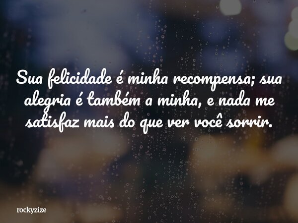 Sua felicidade é minha recompensa; sua alegria é também a minha, e nada me satisfaz mais do que ver você sorrir.