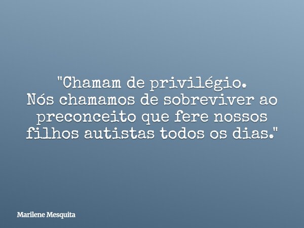 "Chamam de privilégio. Nós chamamos de sobreviver ao preconceito que fere nossos filhos autistas todos os dias."