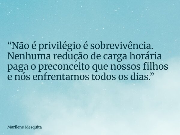 “Não é privilégio é sobrevivência. Nenhuma redução de carga horária paga o preconceito que nossos filhos e nós enfrentamos todos os dias.”