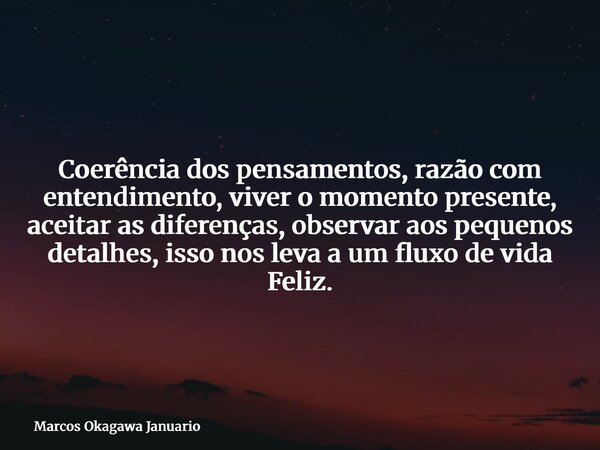 Coerência dos pensamentos, razão com entendimento, viver o momento presente, aceitar as diferenças, observar aos pequenos detalhes, isso nos leva a um fluxo de vida Feliz.