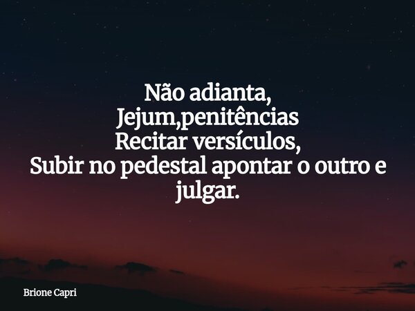 Não adianta, Jejum,penitências Recitar versículos, Subir no pedestal apontar o outro e julgar.