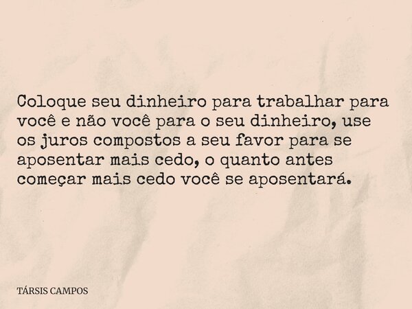 Coloque seu dinheiro para trabalhar para... TÁRSIS CAMPOS
