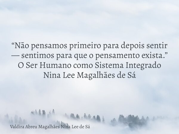 “Não pensamos primeiro para depois sentir — sentimos para que o pensamento exista.” O Ser Humano como Sistema Integrado Nina Lee Magalhães de Sá