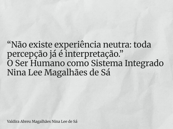 “Não existe experiência neutra: toda percepção já é interpretação.” O Ser Humano como Sistema Integrado Nina Lee Magalhães de Sá
