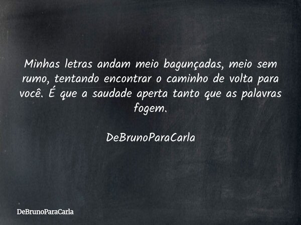 Minhas letras andam meio bagunçadas, meio sem rumo, tentando encontrar o caminho de volta para você. É que a saudade aperta tanto que as palavras fogem. DeBrunoParaCarla