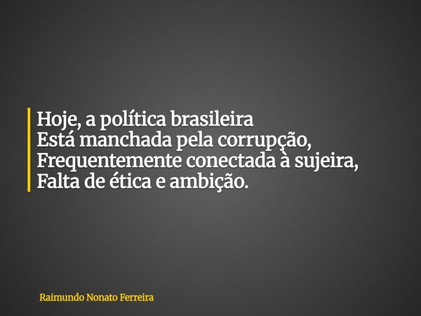 Hoje, a política brasileira Está manchada pela corrupção, Frequentemente conectada à sujeira, Falta de ética e ambição.