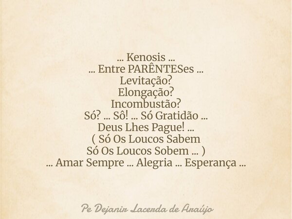 ... Kenosis...... Entre PARÊNTESes...... Pe Dejanir Lacerda de...