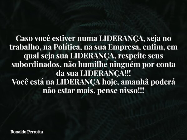 Caso você estiver numa LIDERANÇA, seja... Ronaldo Perrotta