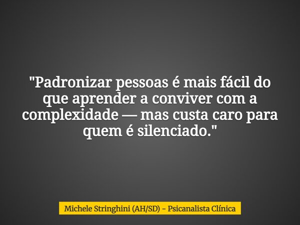 "Padronizar pessoas é mais fácil do que aprender a conviver com a complexidade — mas custa caro para quem é silenciado."