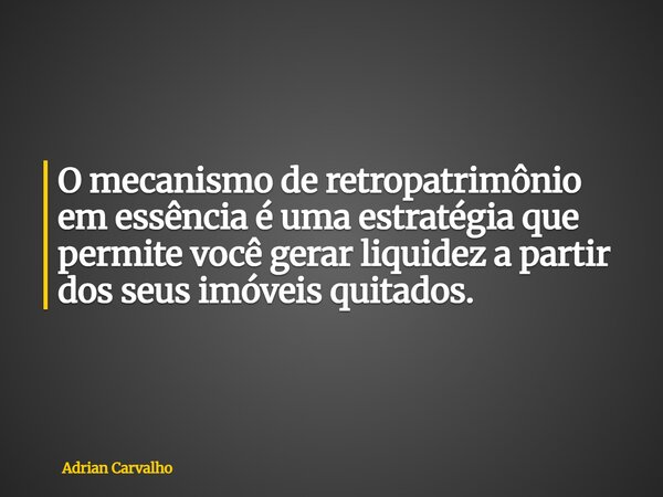 O mecanismo de retropatrimônio em essência é uma estratégia que permite você gerar liquidez a partir dos seus imóveis quitados.