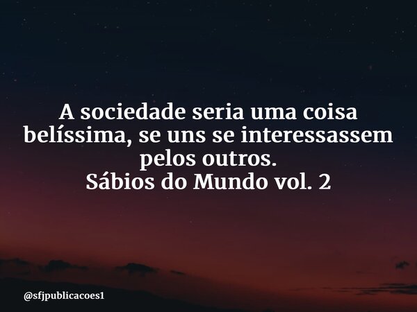 A sociedade seria uma coisa belíssima, se uns se interessassem pelos outros. Sábios do Mundo vol. 2