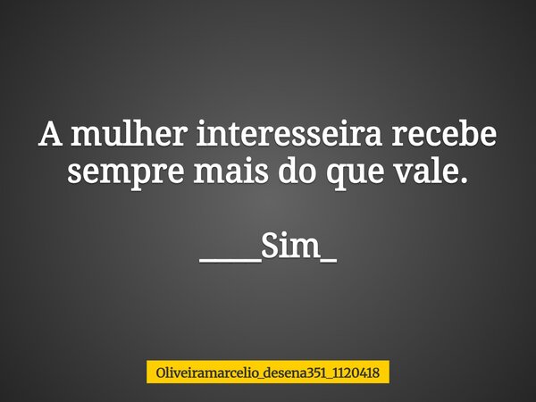 A mulher interesseira recebe sempre mais do que vale. ____Sim_