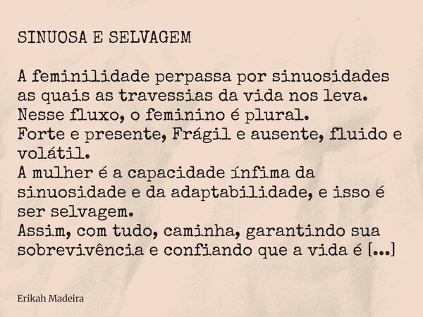 SINUOSA E SELVAGEM A feminilidade... Erikah Madeira