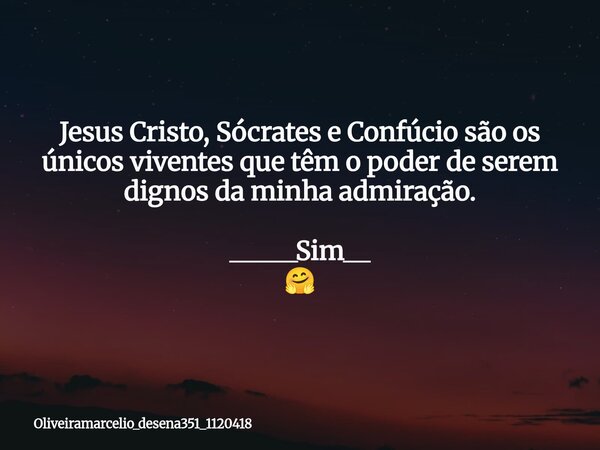 Jesus Cristo, Sócrates e Confúcio são os únicos viventes que têm o poder de serem dignos da minha admiração. _____Sim__ 🤗