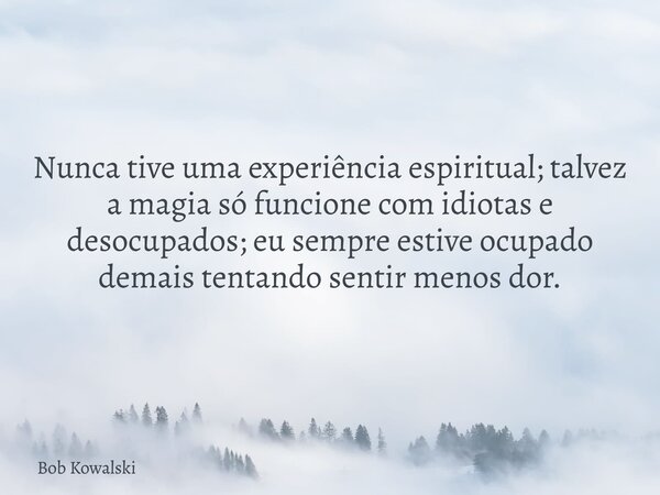 Nunca tive uma experiência espiritual; talvez a magia só funcione com idiotas e desocupados; eu sempre estive ocupado demais tentando sentir menos dor.