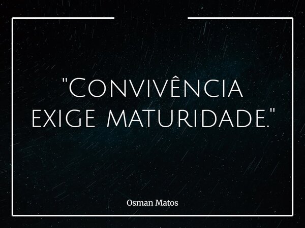 "Convivência exige maturidade."