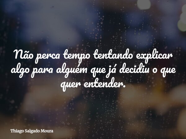 Não perca tempo tentando explicar algo para alguém que já decidiu o que quer entender.
